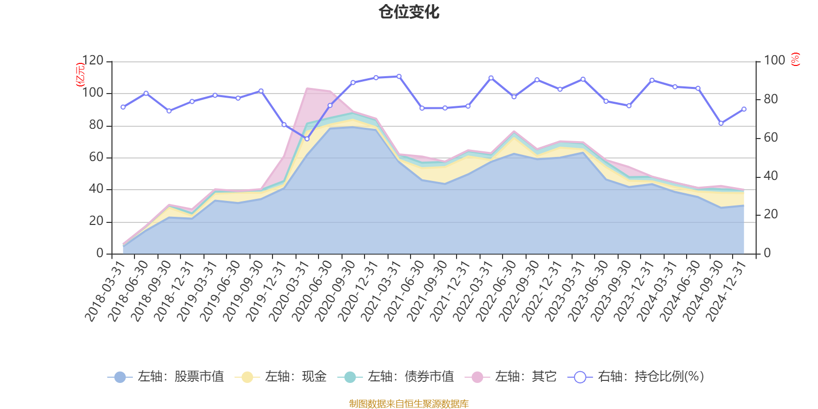 据定期报告数据统计,近三年平均股票仓位为83.49%,同类平均为85.87%。2021年一季度末基金达到92.19%的最高仓位,2020年一季度末最低,为59.75%。